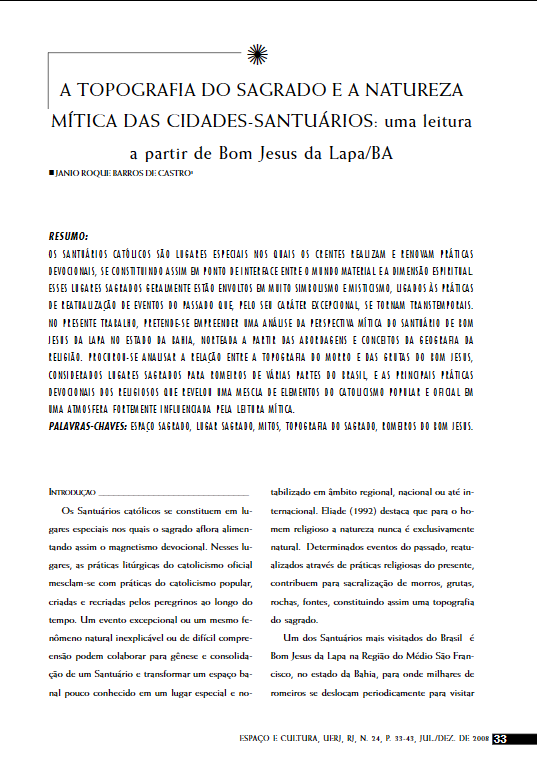 “A topografia do sagrado e a natureza mítica das cidades-santuários: uma leitura a partir de Bom Jesus da Lapa/BA”